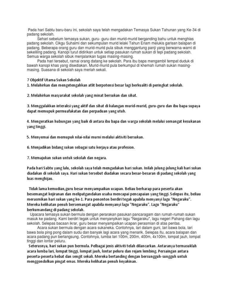 Banyak pihak berpendapat bahawa satu-satunya jalan penyelesaian. Karangan tentang hari sukan. Contoh karangan laporan hari sukan.
